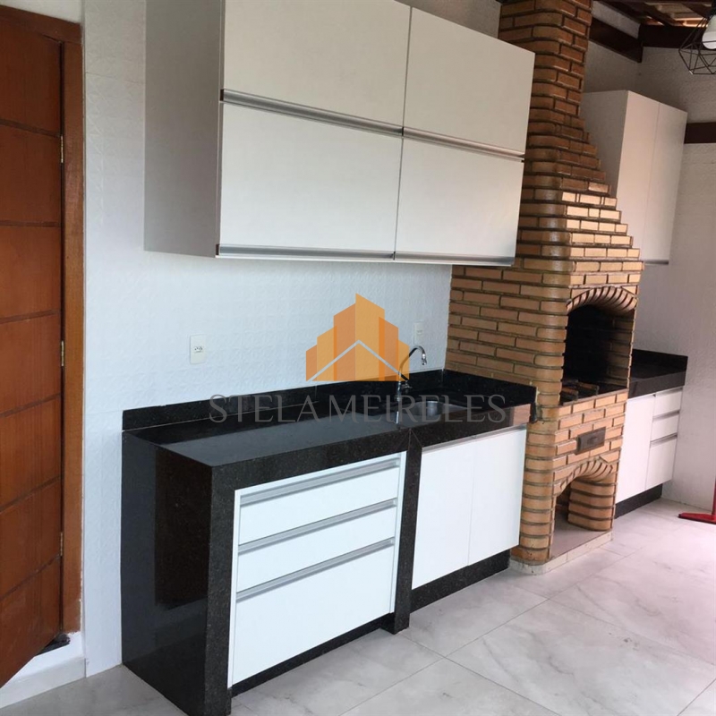 • espaço gourmet com cozinha americana, armários planejados, cook top, churrasqueira, e um banheiro